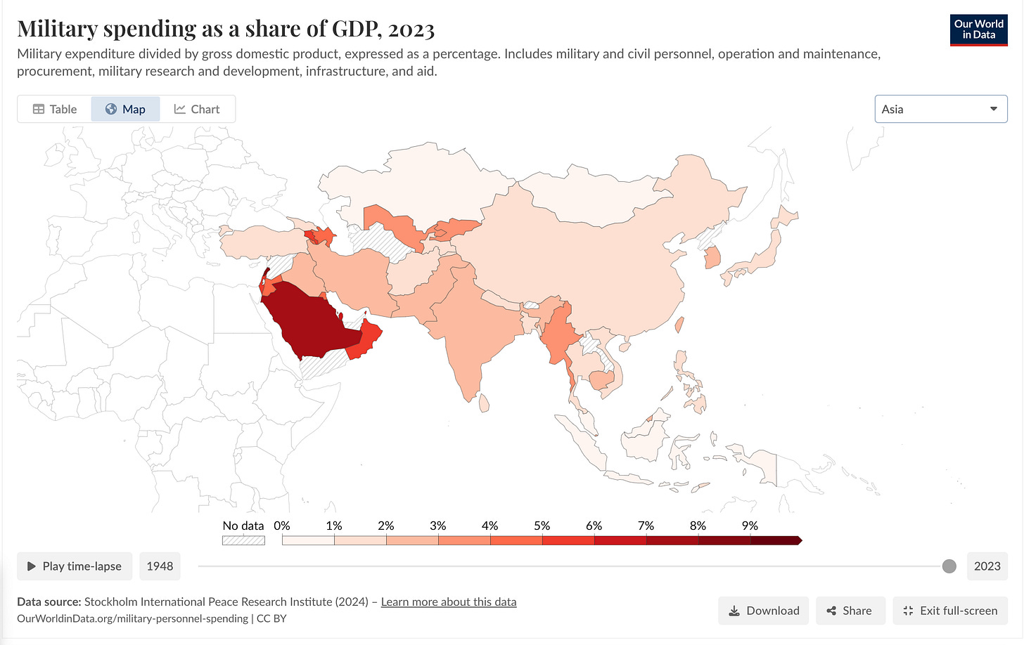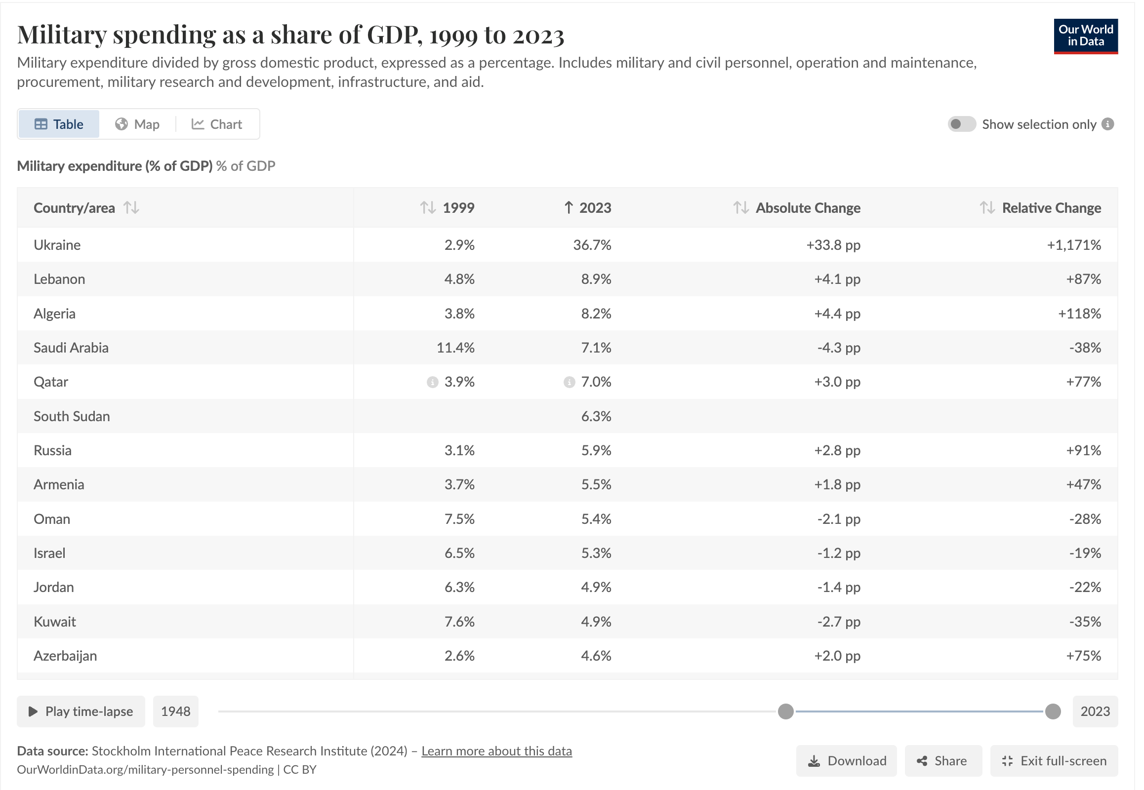 In fact, the countries with the highest military spending as a percentage of GDP can divided into the following categories: