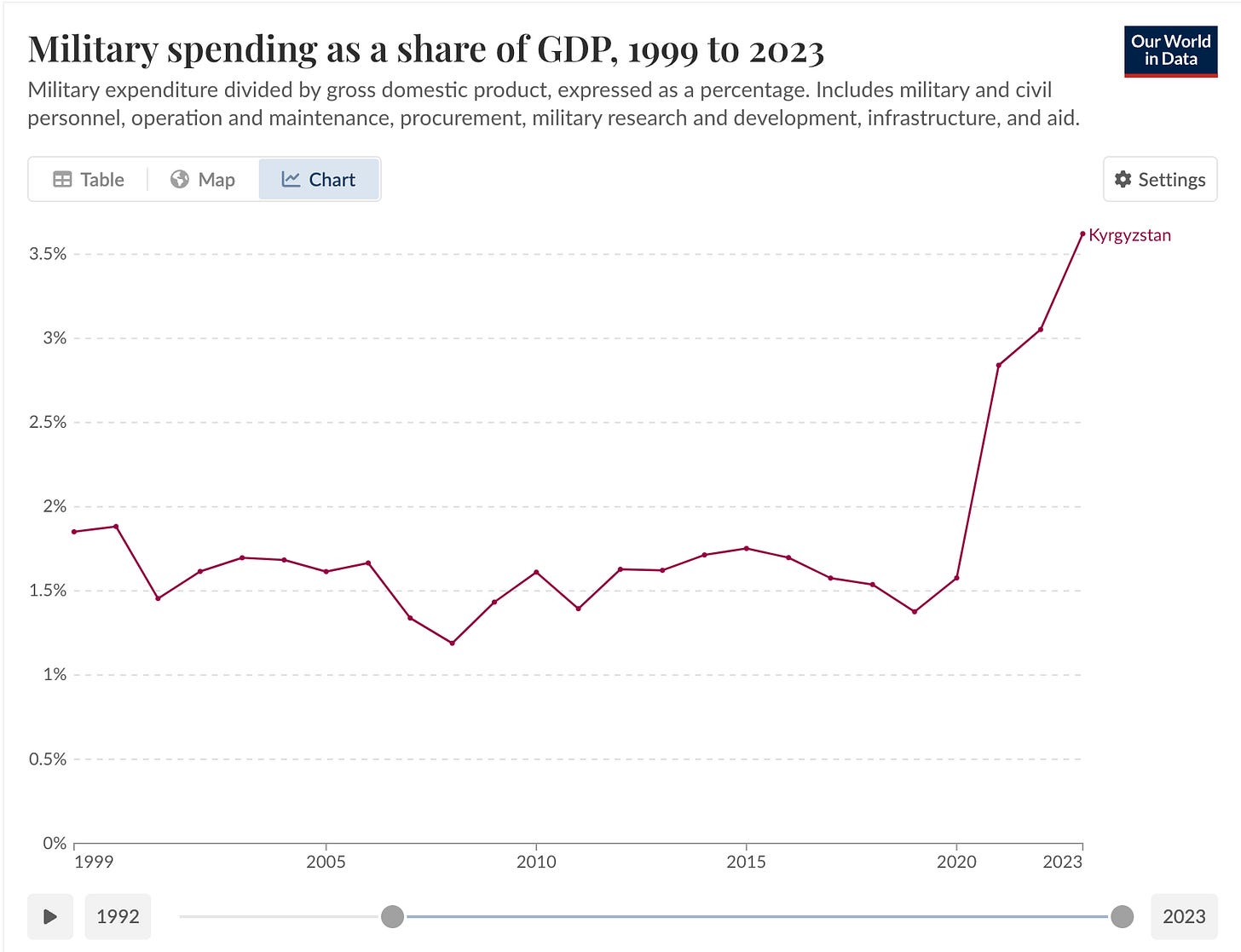 The sudden spike in spending beginning in 2021 in Kyrgyzstan confirms this trend: